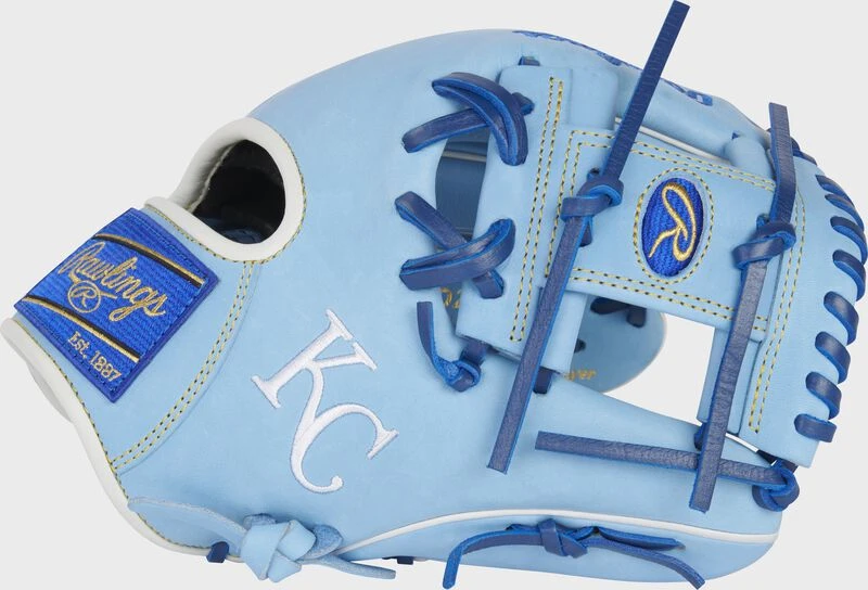 This unique HOH infield glove features an eye-catching Columbia blue design accented perfectly by the royal/white accents and KC logo embroidered on the thumb. As a result, this glove is a top-notch gamer, and the perfect addition to our MLB Team logo glove collection great for any collector too! The 11.5-inch glove was constructed in our 200 pattern, popular for it’s deep, round pocket promoting lightning fast ball transfers and great versatility across the infield. It also has our popular Pro I-web preferred by many of the best infielders.
